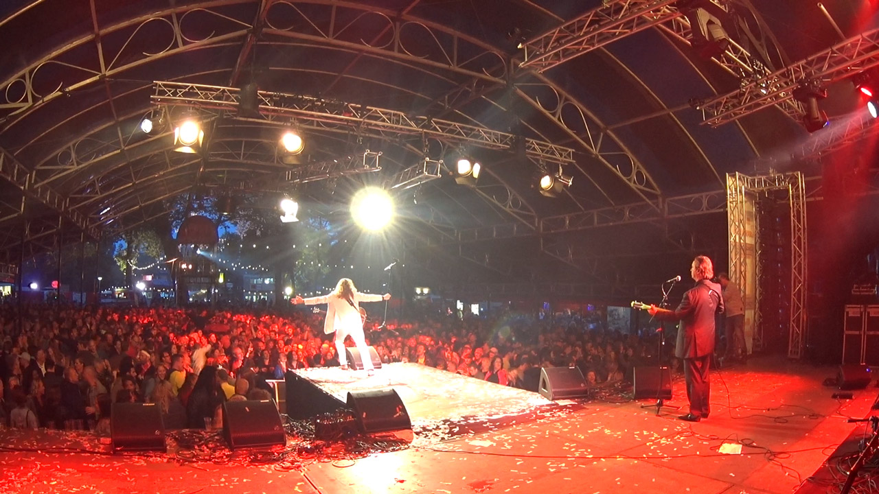 Het is dit jaar het eerste jaar dat ik de microfoon als presentator bij dit grootse festival mocht gebruiken. Er waren vele tientallen muzikanten en artiesten die het levenslied soms heel serieus brachten, maar soms ook met een enorme lach. En toen was het bijna zes uur (ja...de tijd die vloog voorbij). De tijd om niemand minder dan KOOS ALBERTS aan te kondigen. Wat een geweldige eer was dat! Een held is het van me. Alle hits kwamen natuurlijk voorbij. Vlak voor het eind kwamen zijn vrouw en geluidsman naar me toe. Of ik hem wilde afkondigen en het publiek wilde vragen of hij nog een toegift wilde doen. Dus eerst maar aan het publiek gevraagd of ze dat wilde en toen aan Koos. Mijn dag kon niet meer stuk.